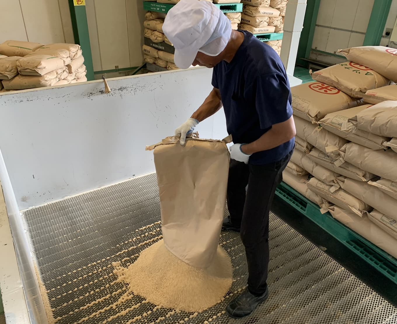 ②の玄米の状態を勘案して、職人が精米加工を行います。
