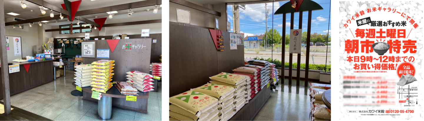 本社にはお米ギャラリーを併設し、お米の小売り・配達をしております。